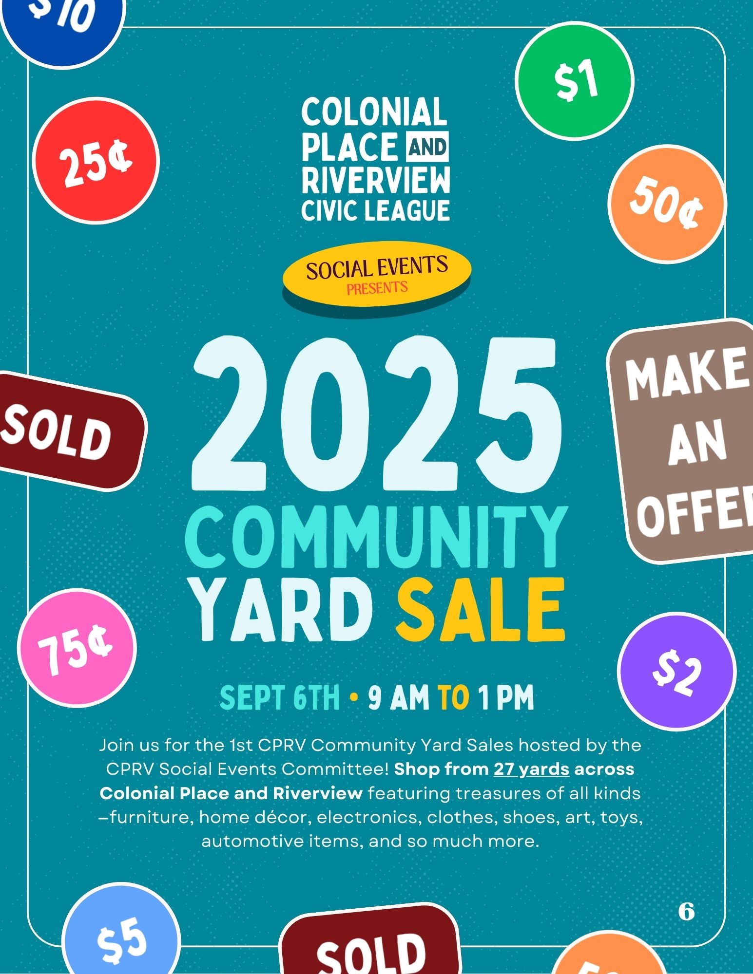 Join us for the 1st CPRV Community Yard Sale hosted by the CPRV Social Events Committee!
